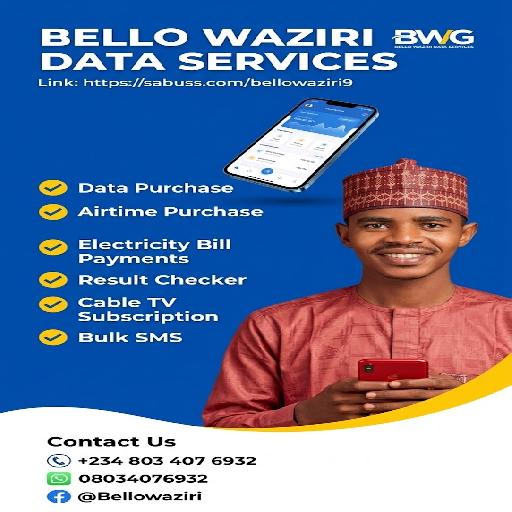 Bello waziri is reliable and affordable platform to buy cheap data bundles and Airtime topup of any Nigerian network. We offer the best price rates for Airtel, MTN, 9mobile and Glo data plans. Are you a data reseller or you want to buy data for your personal use? Bello waziri is your best plug for instant data delivery. Save money by renewing your DSTV, GOTV and Startimes subscriptions at discounted rates. You can pay them online through Bello waziri from the comfort of your home. Try us Today!