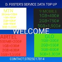 FOSTER CHEAP DATA SUB is reliable and affordable platform to buy cheap data bundles and Airtime topup of any Nigerian network. We offer the best price rates for Airtel, MTN, 9mobile and Glo data plans. Are you a data reseller or you want to buy data for your personal use? FOSTER CHEAP DATA SUB is your best plug for instant data delivery. Save money by renewing your DSTV, GOTV and Startimes subscriptions at discounted rates. You can pay them online through FOSTER CHEAP DATA SUB from the comfort of your home. Try us Today!