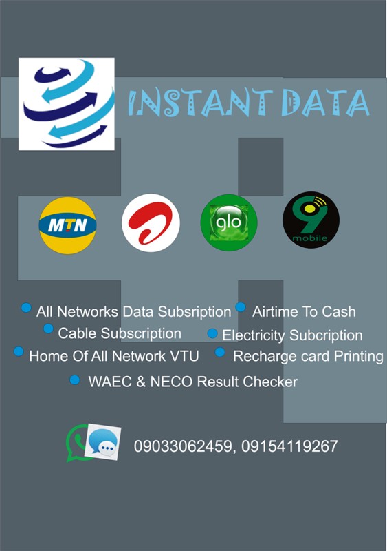 Enjoy instant airtime top-up. Cheap data for all networks.