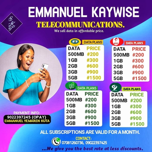 Khay wise telecommunications is reliable and affordable platform to buy cheap data bundles and Airtime topup of any Nigerian network. We offer the best price rates for Airtel, MTN, 9mobile and Glo data plans. Are you a data reseller or you want to buy data for your personal use? Khay wise telecommunications is your best plug for instant data delivery. Save money by renewing your DSTV, GOTV and Startimes subscriptions at discounted rates. You can pay them online through Khay wise telecommunications from the comfort of your home. Try us Today!