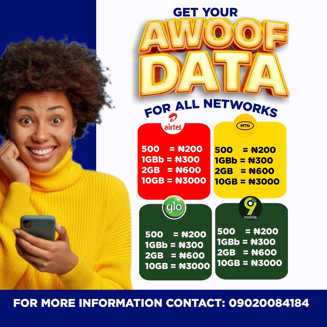 Enjoy instant airtime top-up. Cheap data for all networks.
