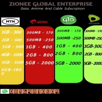 Zionee Global Enterprise is reliable and affordable platform to buy cheap data bundles and Airtime topup of any Nigerian network. We offer the best price rates for Airtel, MTN, 9mobile and Glo data plans. Are you a data reseller or you want to buy data for your personal use? Zionee Global Enterprise is your best plug for instant data delivery. Save money by renewing your DSTV, GOTV and Startimes subscriptions at discounted rates. You can pay them online through Zionee Global Enterprise from the comfort of your home. Try us Today!